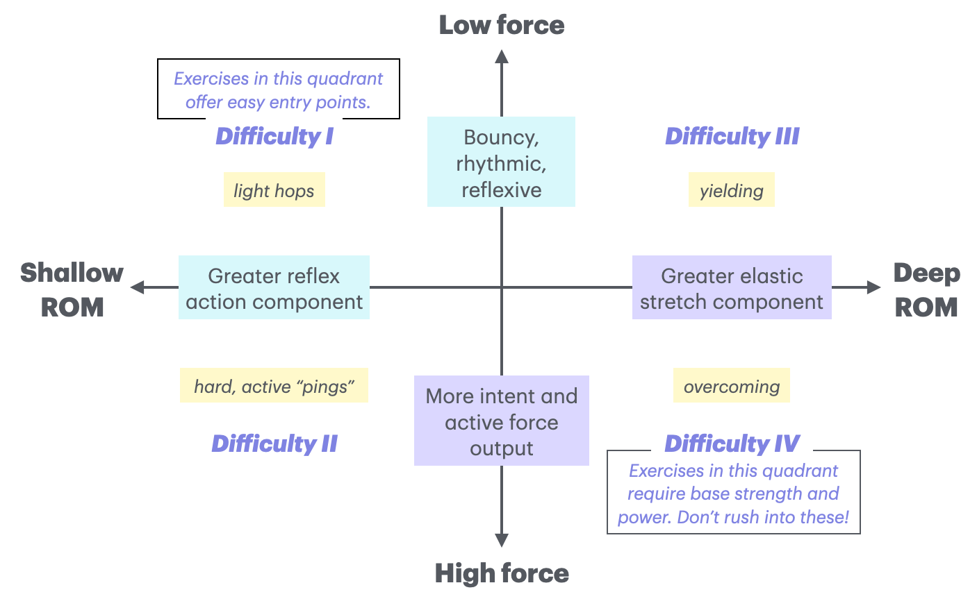 A broad classification of exercises is helpful in this regard, and I personally like the one presented by (McInnes Watson 2024) (adapated here in Figure 2).